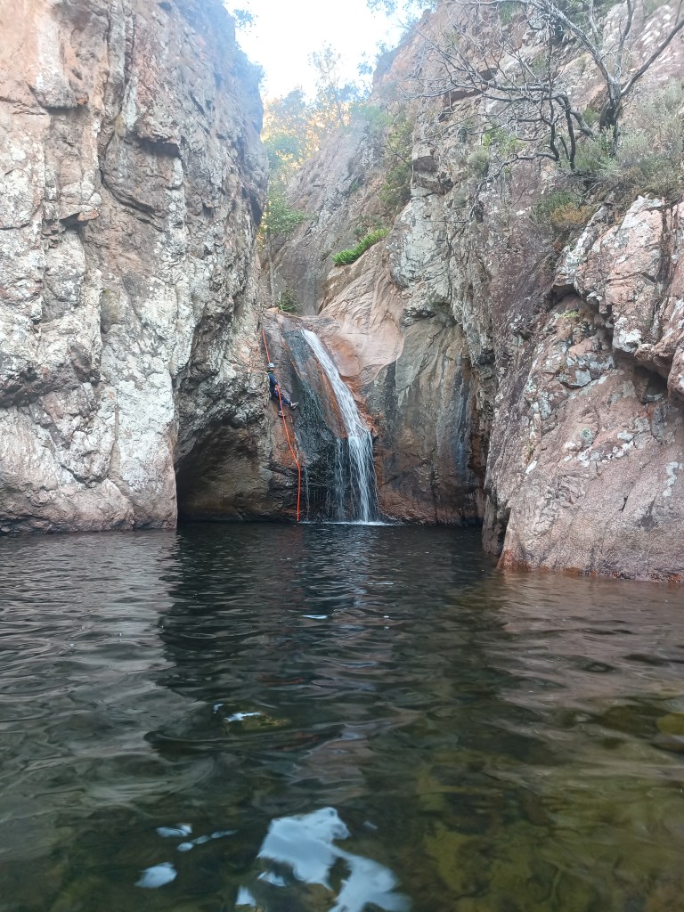 Remarques générales : 1ère partie belle et ludique qui s’enchaine bien. Une intégrale qui nécessite plus de 2h de marche pour la dernière cascade… Je ne sais pas si c’est valable. Canyon prisé l’été, les cordes de rappel sont en fixe…