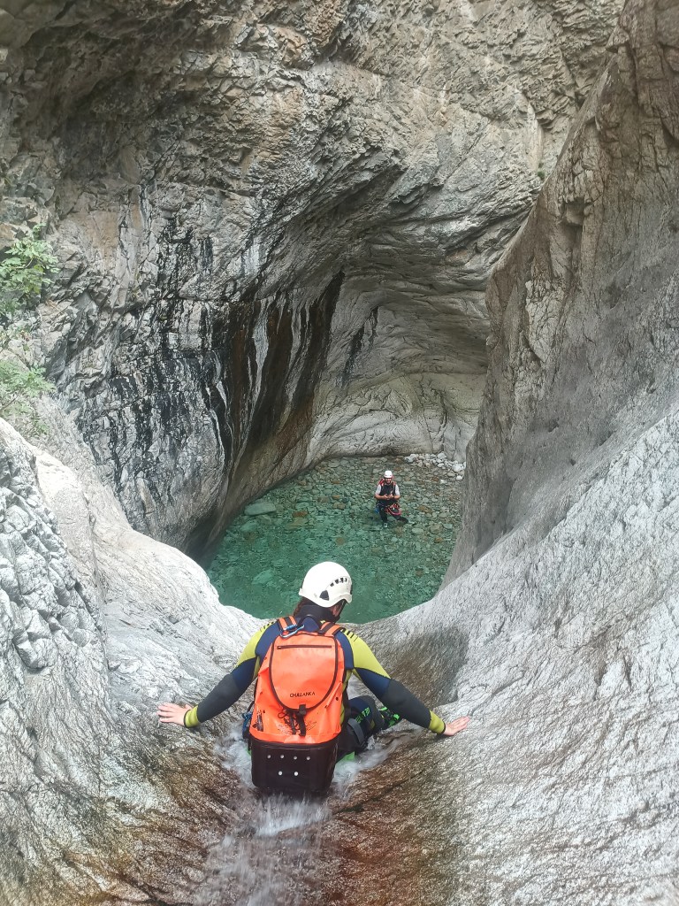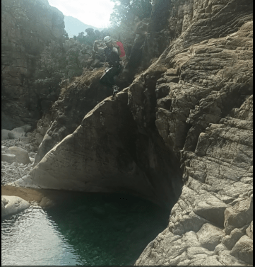 Parcours : La descente commence rapidement avec une série de petites cascades (C4, C7, C13) qui vous plongent immédiatement dans l’action. Vous enchaînez sur une série d’obstacles ludiques tels que des toboggans naturels et des sauts, parfaits pour faire le plein de sensations fortes. Faites attention à la profondeur des vasques cristallines et à la présence de blocs immergés, parfois présents dans les canyons corses. Après une descente en rappel de 12 mètres (C12), vous profitez d’un nouvel enchaînement de sauts et toboggans qui vous guident vers la sortie du canyon. Cette gorge offre un parfait mélange de descente ludique et d’obstacles aquatiques pour tous les niveaux, idéal pour les pratiquants de canyoning en quête d’aventure.