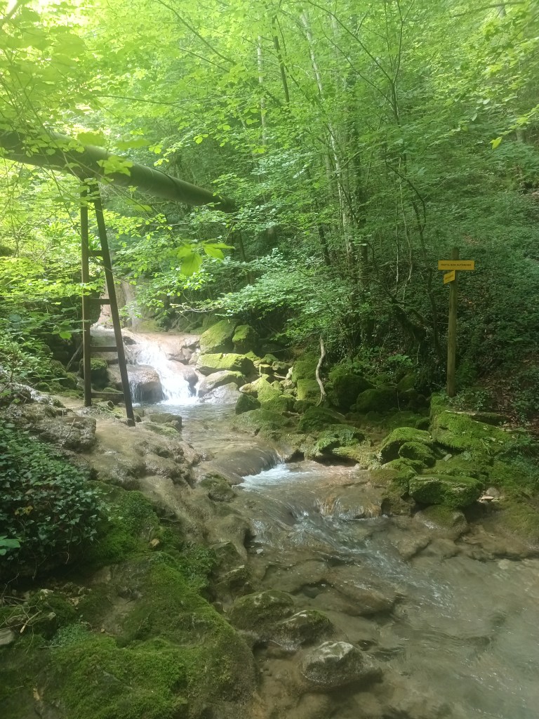 Approche : 15min : du parking, partir à pied à gauche, puis à la première intersection prendre à nouveau à gauche en direction du village. A nouveau à gauche pour rentrer dans le hameau, laisser une première rue à droite et continuer jusqu’à impasse de la gorge (juste avant on voit le ruisseau sur notre droite). Monter dans l’impasse et suivre le chemin au balisage jaune. Au bout de 5min on voit une sente à gauche. C’est le sentier de retour. On continue jusqu’au « pont ». On laisse le pont sur notre droite et on poursuit au plus proche du ruisseau. Quand le chemin traverse le ruisseau, c’est là qu’on s’arrête ! C’est l’entrée. On saute dans la combinaison néoprène et c’est parti.